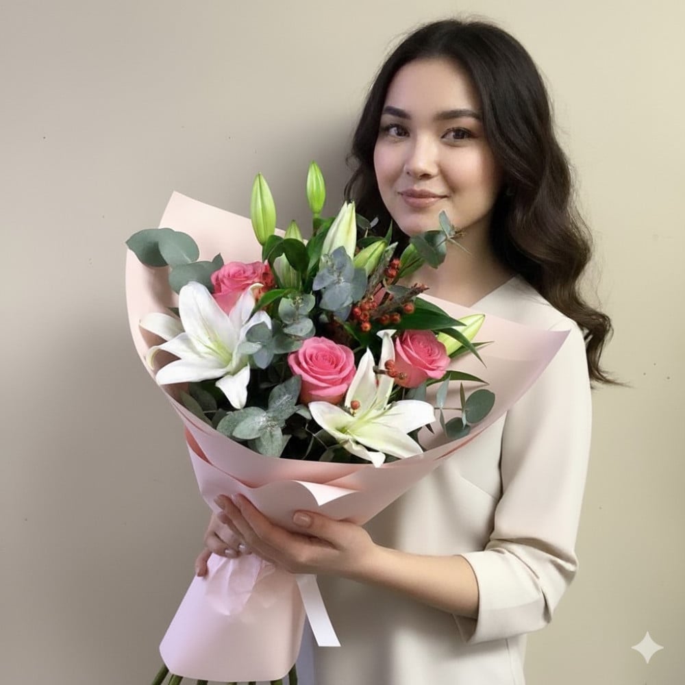 Букет из роз и лилий