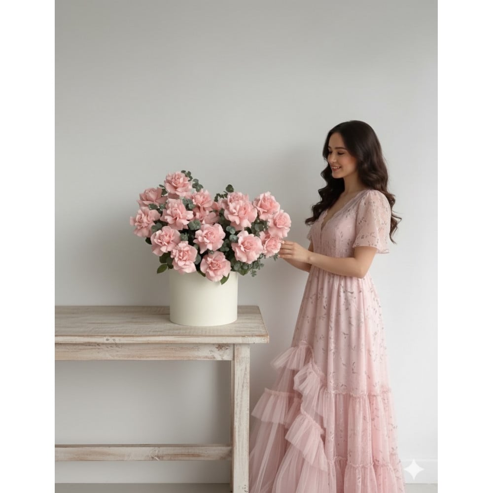 Дорогие клиенты, хотим Вам сообщить, что каждая наша композиция индивидуальна, и каждый наш флорист вкладывают душу в собранные им композиции, и букета в точь в точь не бывает. в зависимости от сезона и наличия цвета букет может отличаться до 30%